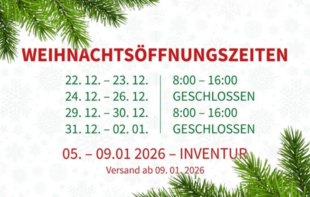 Wir möchten Sie über die Öffnungszeiten und den Betrieb unseres Unternehmens während der Weihnachtsfeiertage und zu Beginn des neuen Jahres informieren.