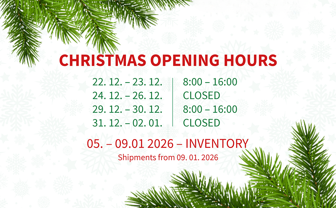 We would like to inform you about our company’s opening hours and operations during the Christmas holidays and at the beginning of the new year.